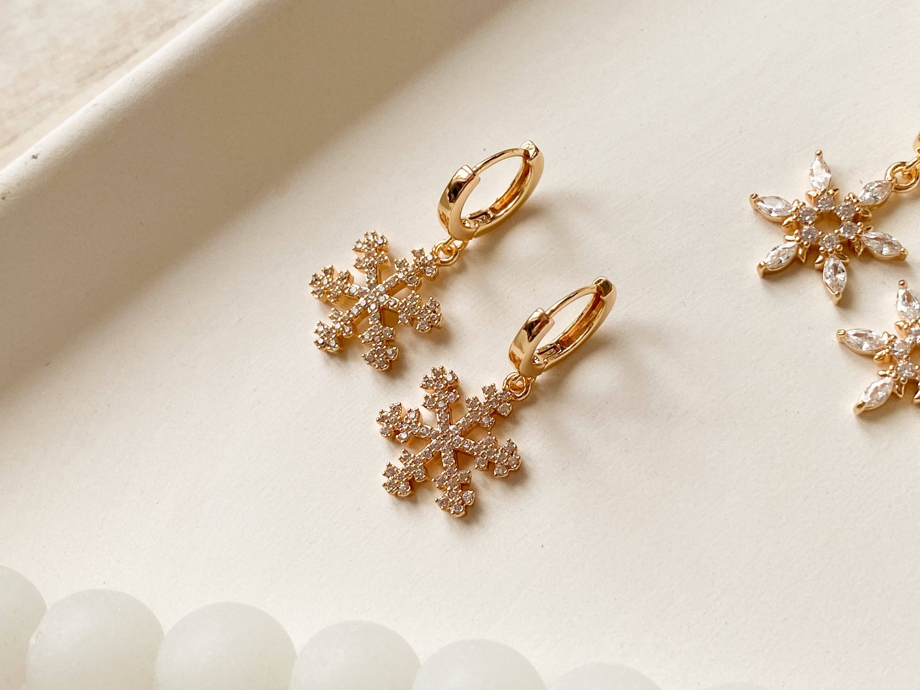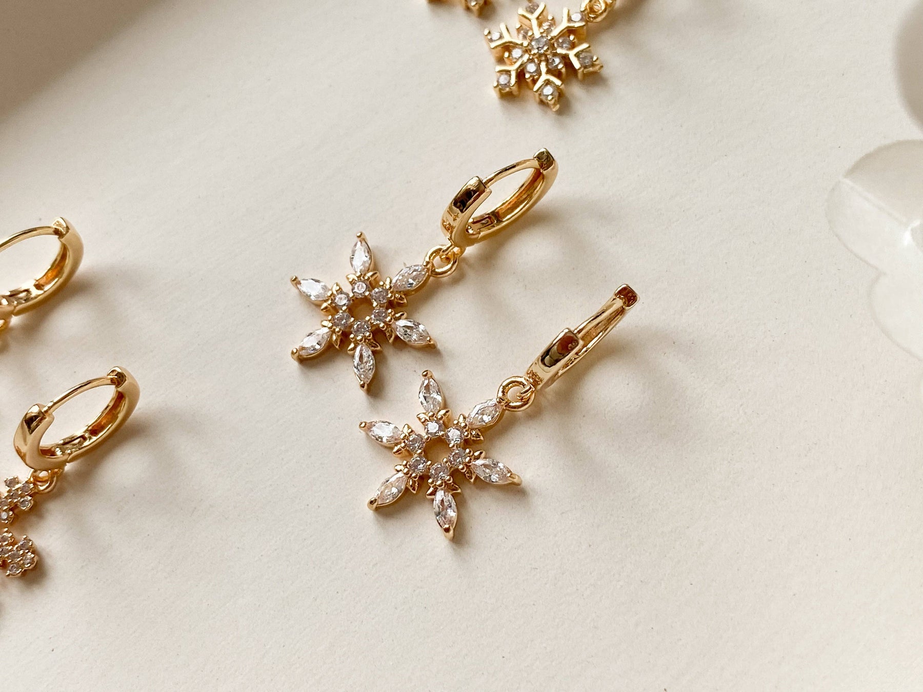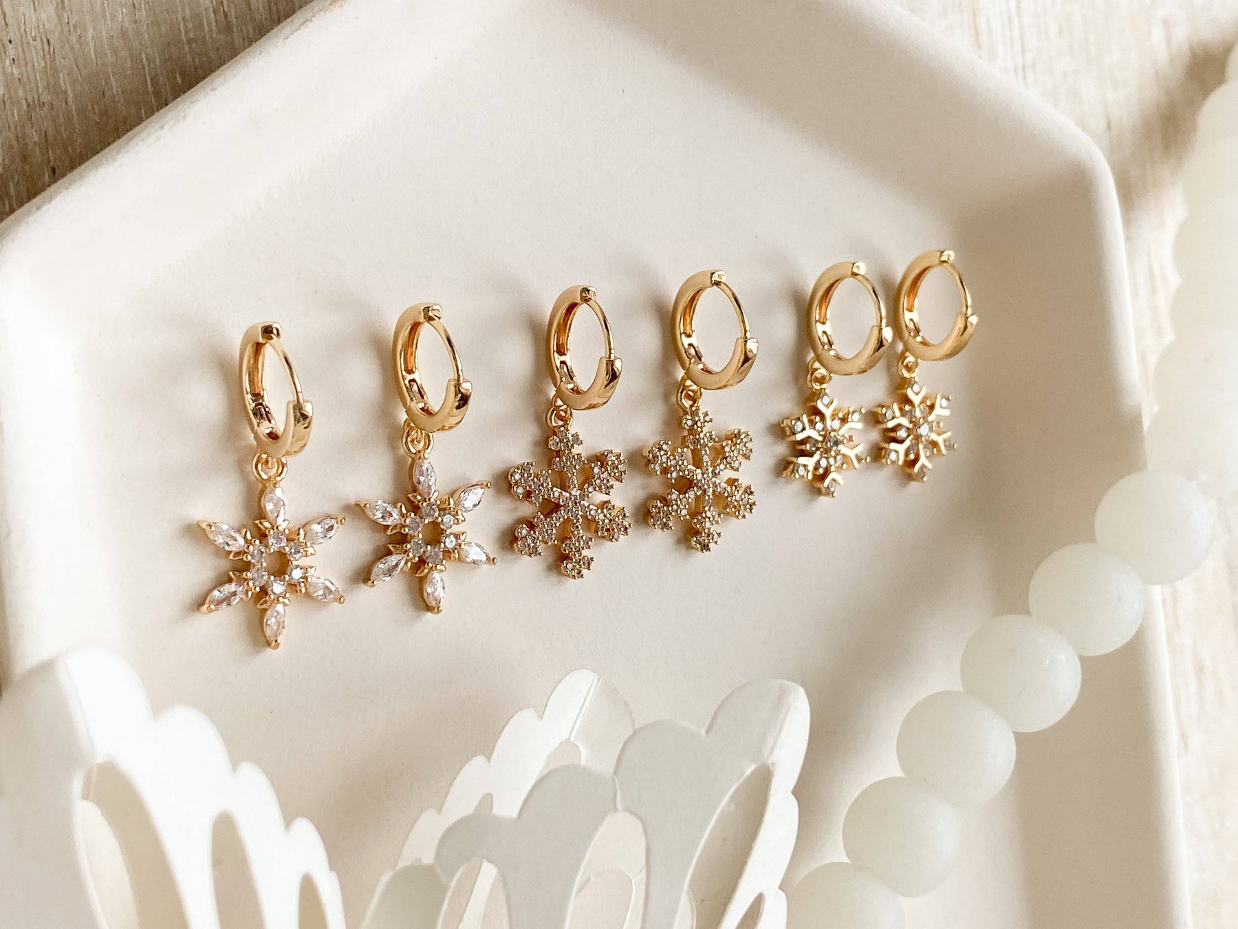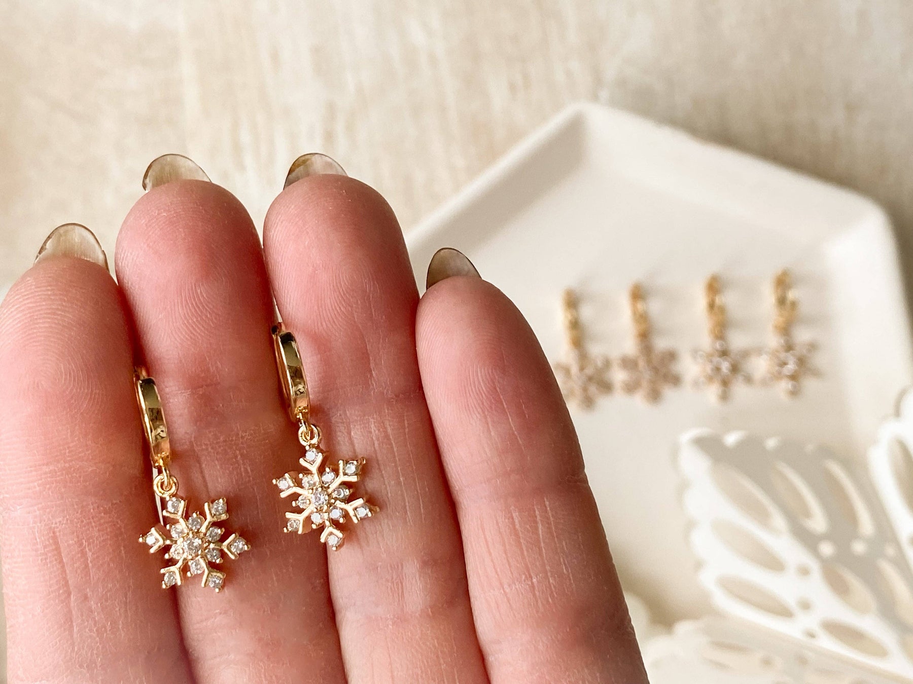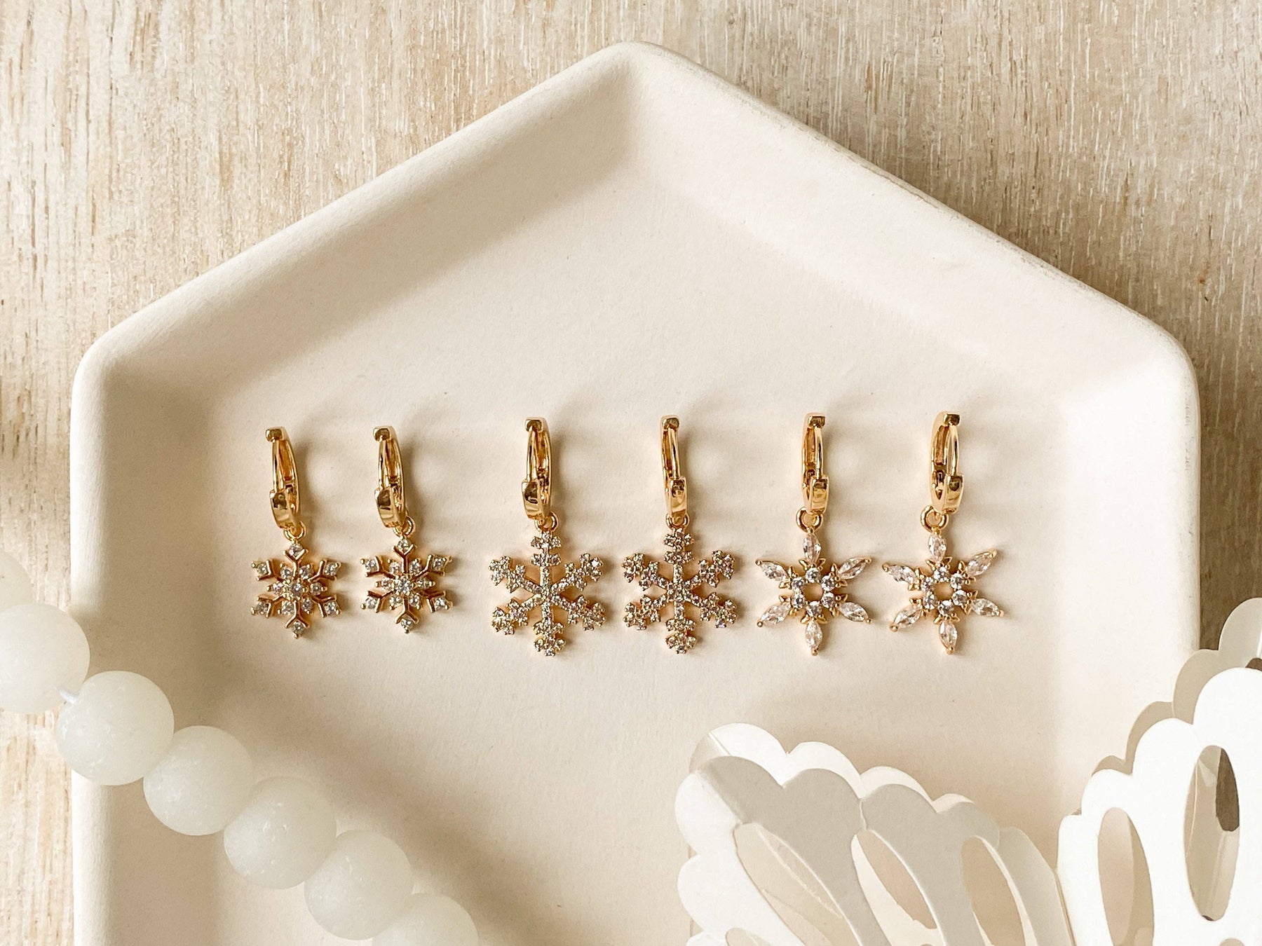 Not one snowflake is the same! These cubic zirconia hoops come in three different styles of flakes, are so sparkly, and made from cubic zirconia stones. Nickel free. Tarnish resistant.