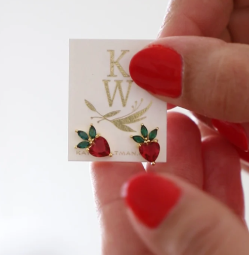E1758G Gold Earrings-Mini Emerald Heart Studs