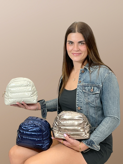 The Irene puffer cosmetic bag has a zipper top closure and inside zipper pocket for all your essentials. As part of our Patricia Puffer Collection, these are designed to coordinate with the Weekender and Tote. Spot clean. DIMENSIONS 8L x 4.5W x 6.5H