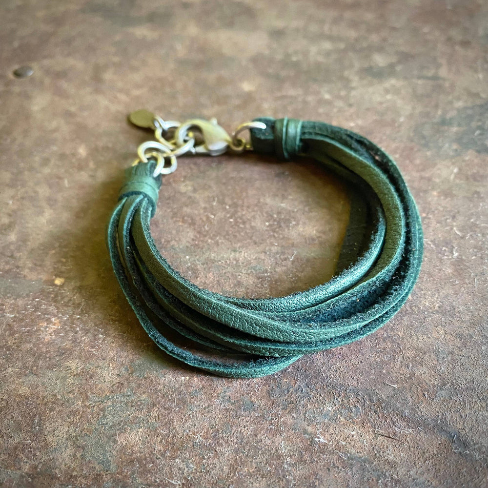 Leather 7-Strand Bracelet-Hunter Green & Silver, Western