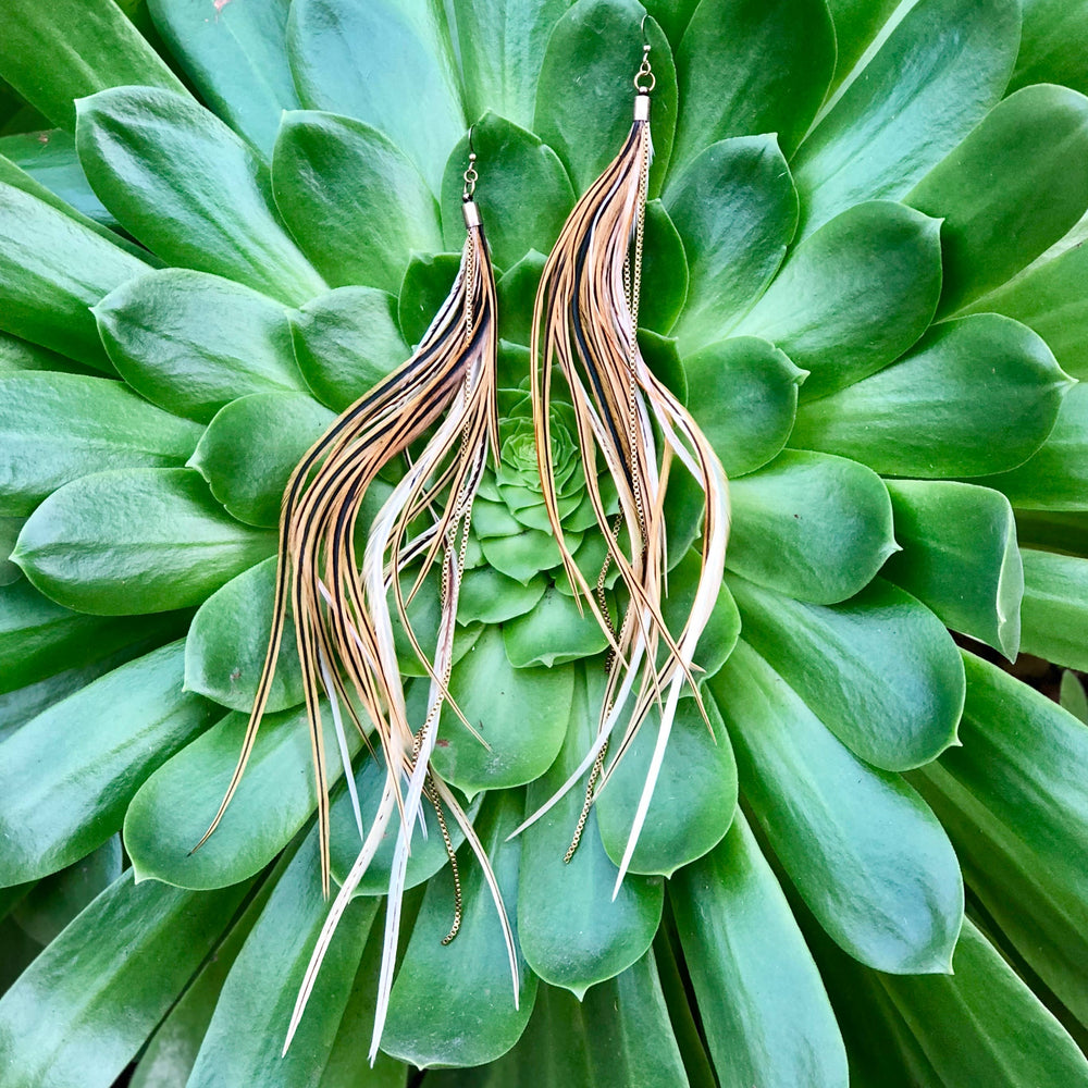 Earrings-FREEBIRDS COLLECTION: Cone Feather-Golden Black Grizzly