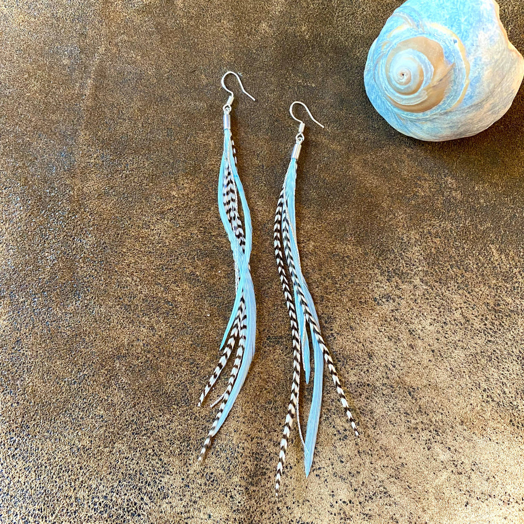 Earrings-FREEBIRDS COLLECTION: Turquoise & Feather-Cree Mix