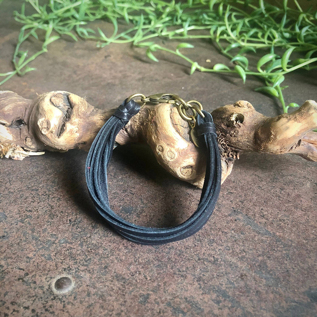 Leather 7-Strand Bracelet-Black & Brass, Boho Western