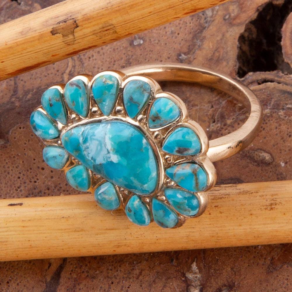 Ring-Sedona Blue Turquoise Orange Goldstone Golden Statement