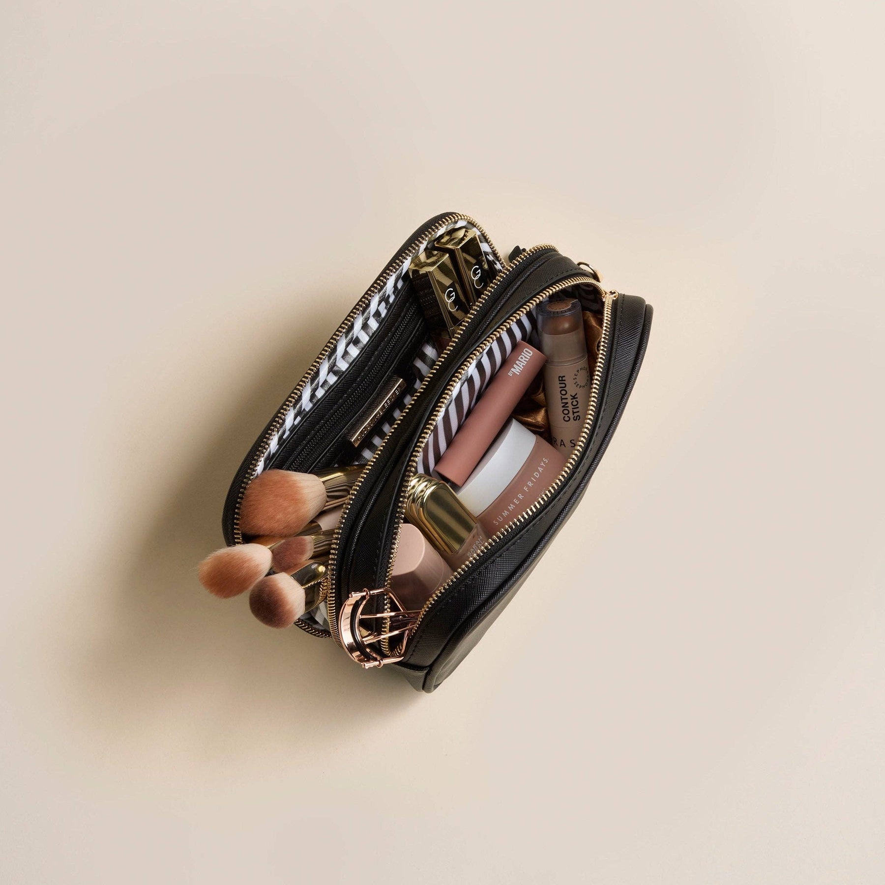 The Latitude Beauty Bag is a versatile and stylish companion for your beauty essentials. Its spacious interior, featuring two expandable zippered compartments, provides ample storage for your makeup and travel accessories.