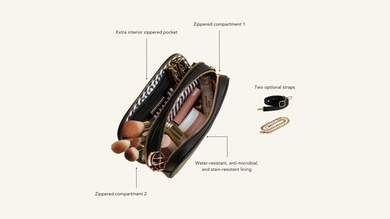 Designed with both function and aesthetics in mind, the Latitude Beauty Bag offers a sleek and minimalist design that complements any travel style. The compact size and durable construction make it easy to carry and perfect for both everyday use and travel adventures.