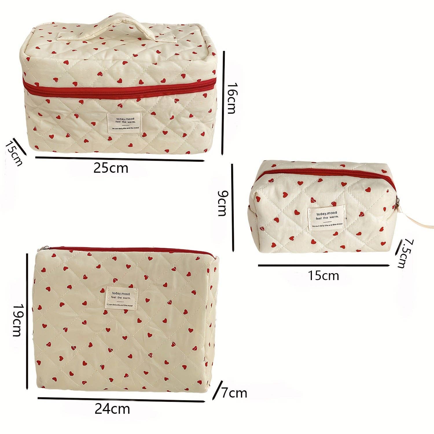 Feature: * Simple, Vintage * Butterfly Print * Color Block * Cotton Quilted * Large Capacity * Beige Cotton Canvas Lining Inside * Portable * Zipper Closure Material: * Polyester Size: * Large : 25*15*16 cm * Midi: 24*7*19 cm * Small: 15*7.5*9 cm Package: * Package include 1 * cosmetic bag. Note: * Wipe clean with a damp cloth; not machine washable unless specified. * Avoid overloading to maintain shape and prevent zipper damage. * Keep away from direct heat or prolonged sun exposure to avoid warping.