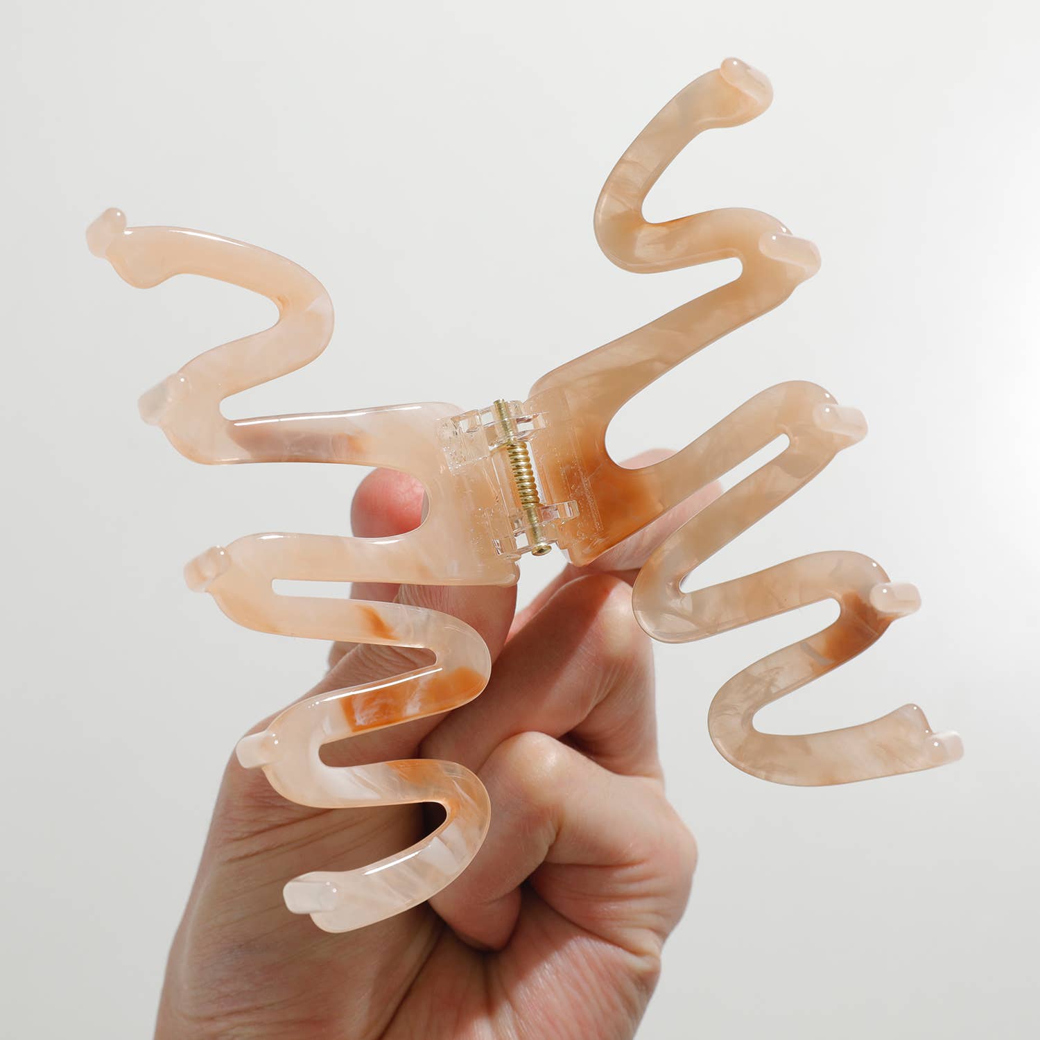 Our Willow claw but fully acetate! Available in our 2025 Spring collection prints. Featuring a squiggle design, this wavy clip is the perfect unique accessory.