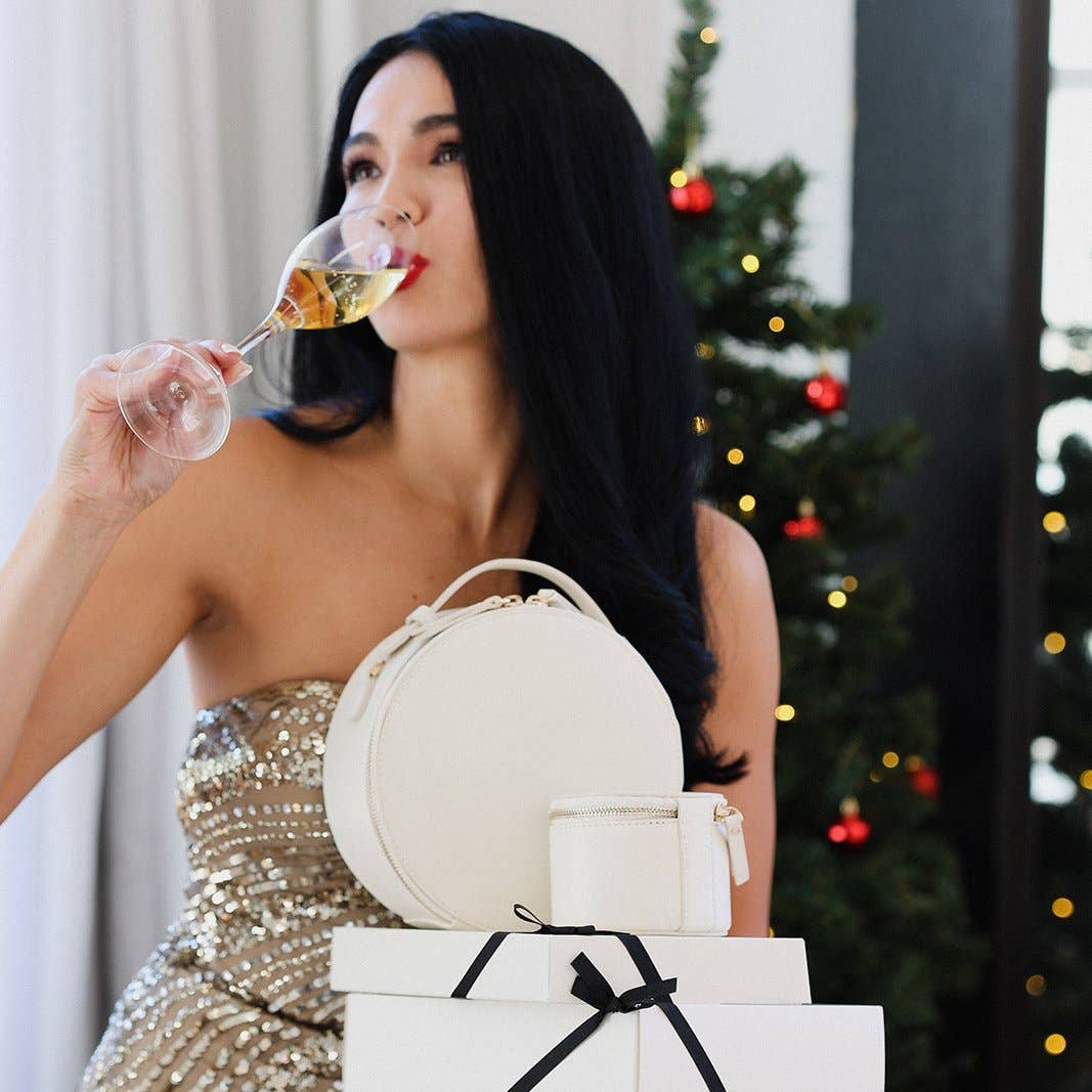 Easy Access Top Handle * Dimensions: D 8" Elevate your adventures with our Nomad Round Travel Case, a stylish and functional companion designed for the modern traveler. Crafted from luxurious vegan saffiano leather, this sleek circle bag boasts a durable exterior and a removable, TSA-friendly clear compartment. Enjoy the best of both worlds: a practical travel case and a chic handbag in one. The Nomad Round Travel Case offers ample storage, easy organization, and effortless portability, ensuring your essentials are always within reach. Experience the epitome of modern luxury with our Nomad Round Travel Case Collection.