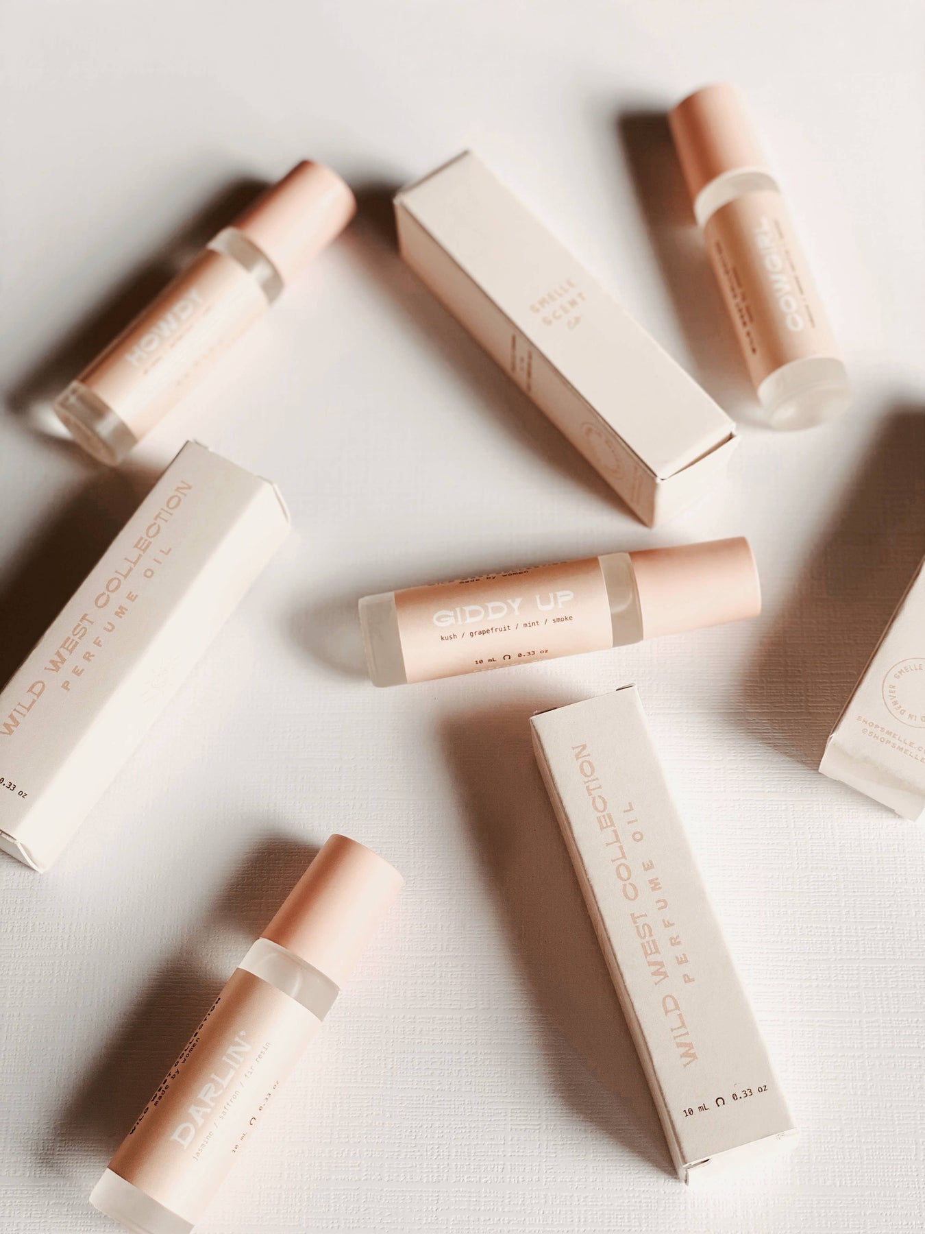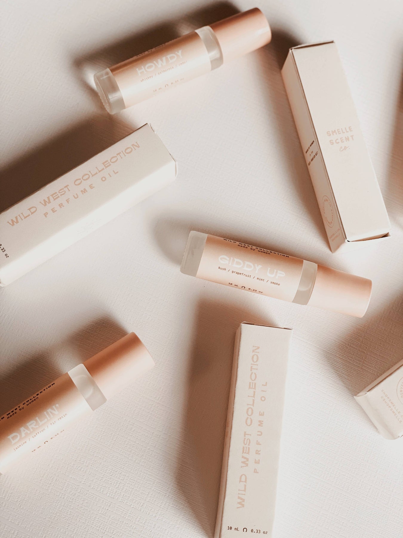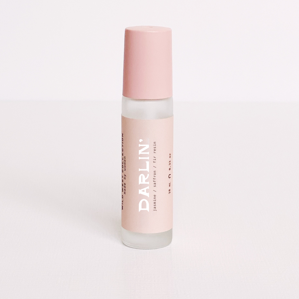 This Wild West Collection is equal parts coastal cowgirl meets Rocky Mountain rancher. Darlin' has notes of jasmine, saffron and fir resin. Smells like: our version of Baccarat Rouge 540 Our Wild West Collection is now featured in a new product category - roller ball perfume oil. We have had such a great response to our Wild West Collection and are thrilled to expand this set of fragrances into a new category. Featured in a matte glass roller bottle with a matte pink lid and stainless steel roller ball, packaged in matte cream packaging. Ingredients: coconut oil, jojoba oil, safflower oil, phthalate free perfume 10 mL / 0.33 oz