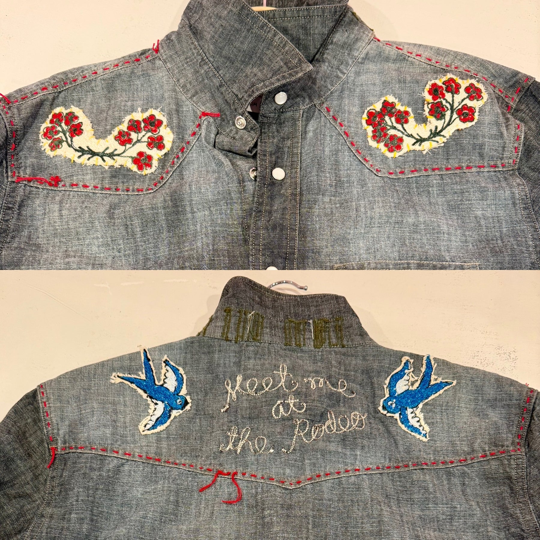 Get your own Blink Blink one-of-a kind embroidered and hand weathered button up for all your important fashion moments!