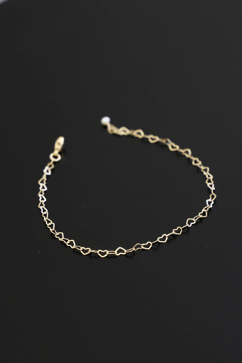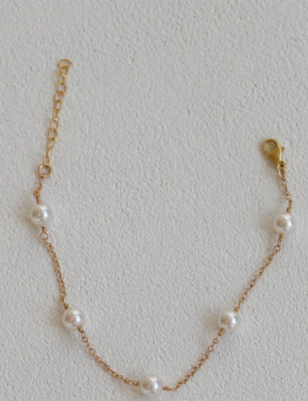 B1216 Gold Bracelet-Pearl Station Chain-24kt gold plate