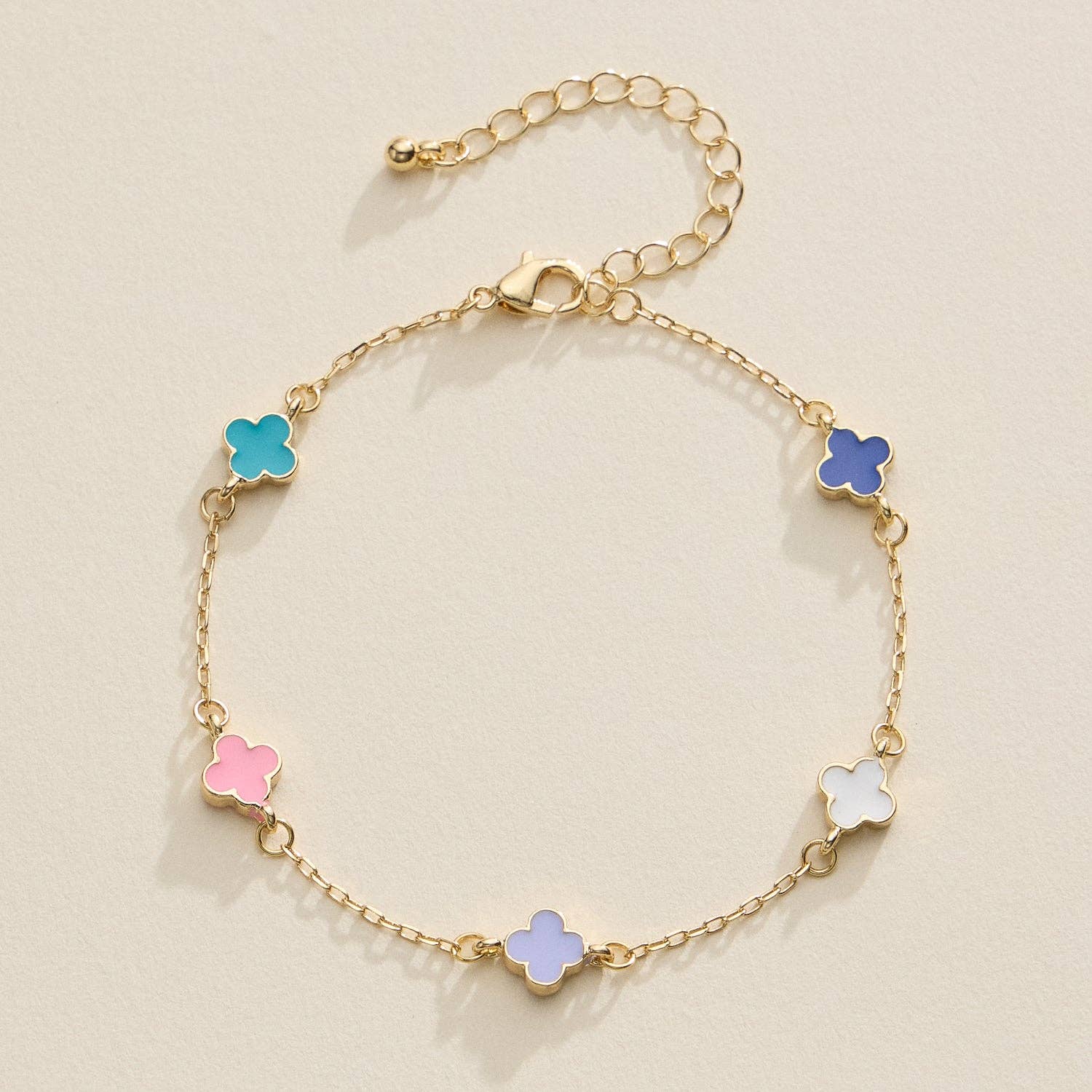 Gold Clover Charm Bracelet – Elegant Dainty Chain with Enamel Accents