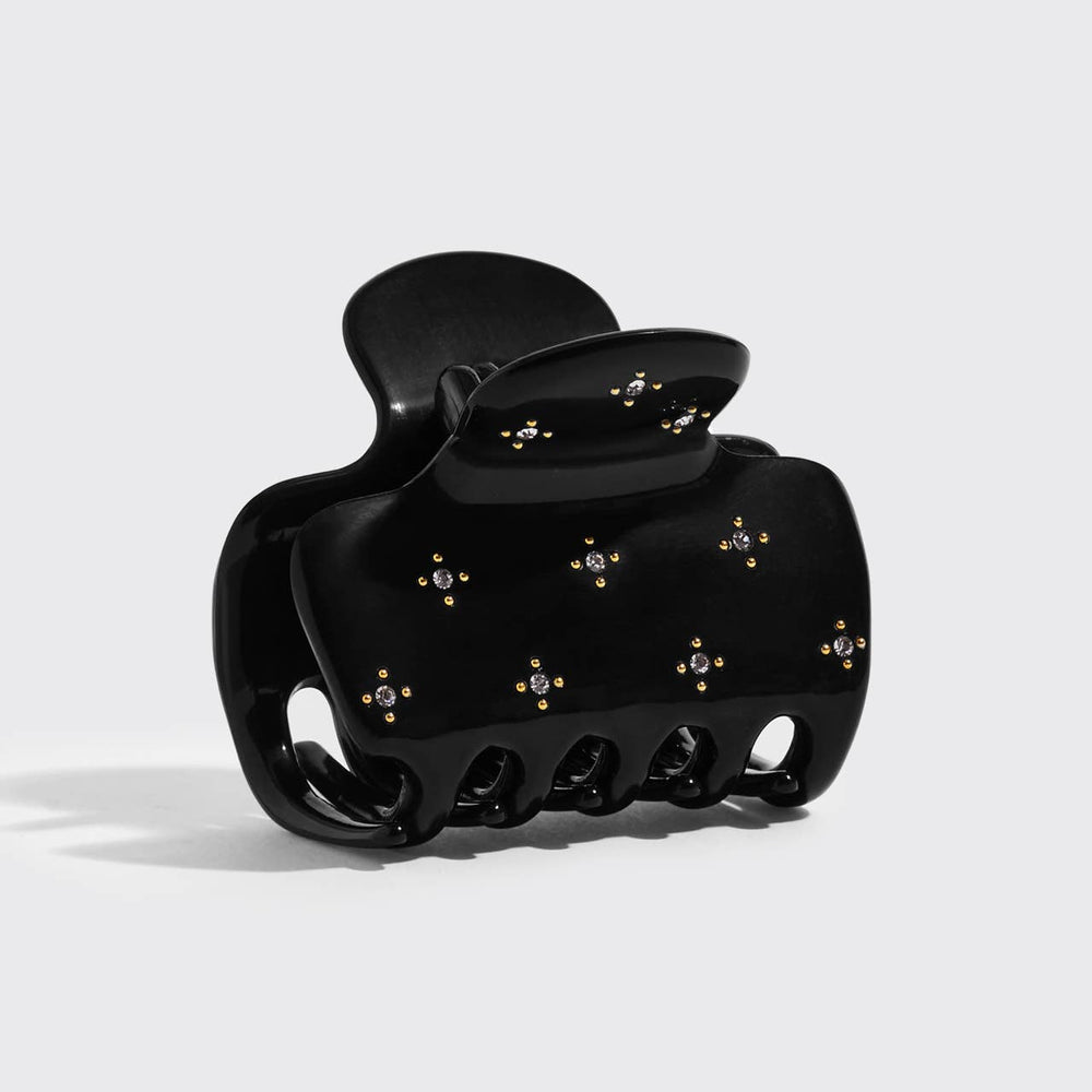 Recycled Plastic Rhinestone Medium Puffy Claw Clip-Black