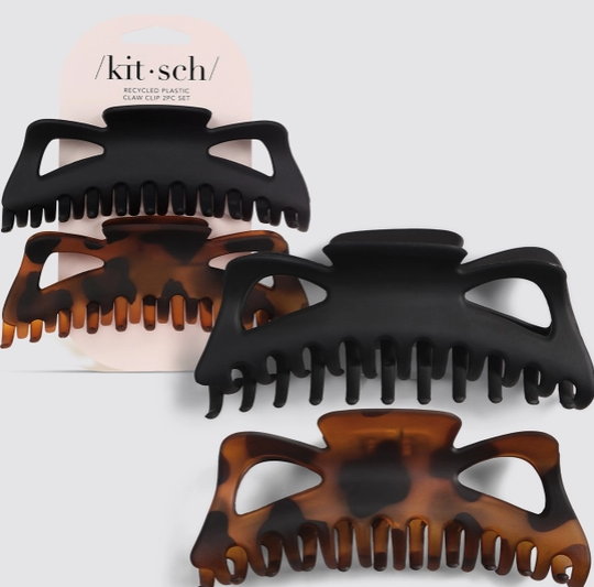Recycled Plastic Jumbo Classic Claw Clips 2pc-Black & Tort