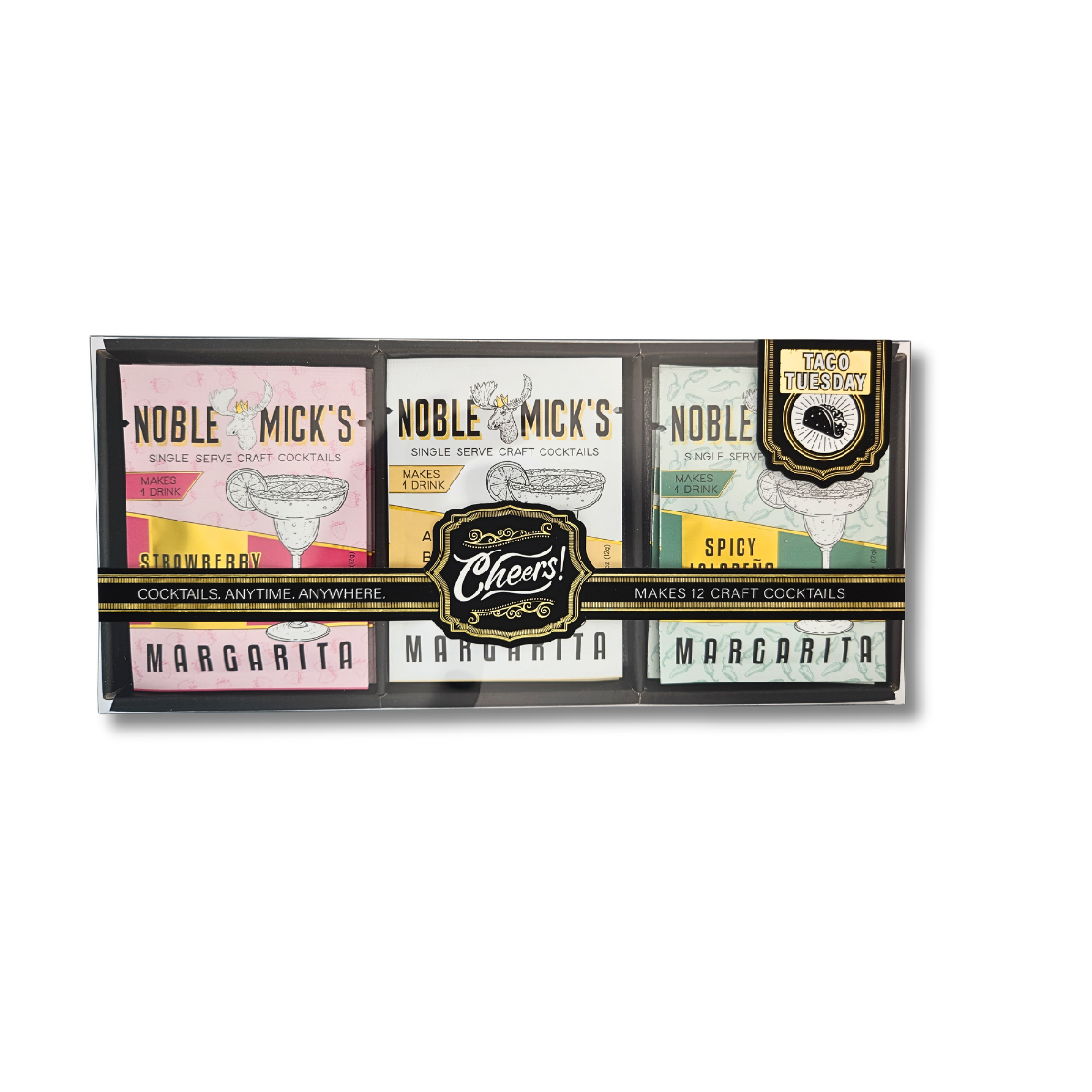 Taco Tuesday Gift Set - Makes 12 cocktails per gift set: 4 Strawberry Margarita, 4 Margarita, and 4 Spicy Jalapeno Margarita, I dare you to find someone who doesn't like tacos...go ahead...I'll wait. That's right, we all love taco Tuesday and this gift set makes a great housewarming or hostess gift. You can eat tacos any day. Don't wait till Tuesday, we won't tell.