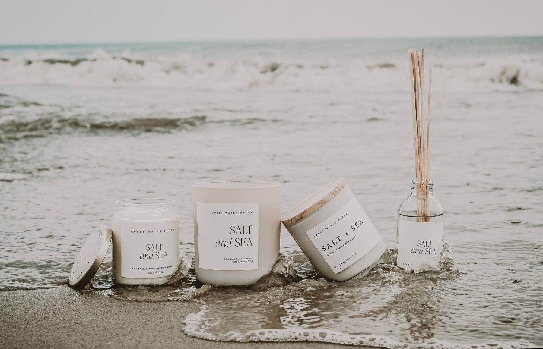 Salt and Sea is our best-selling scent for a reason, It captures the sophistication and refreshment of a serene coastal evening. Our white jars fit any home decor style.