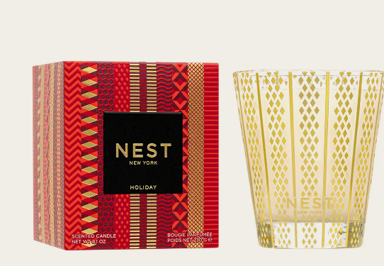 An inviting blend of pomegranate, mandarin orange, pine, cloves, and cinnamon with a hint of vanilla and amber