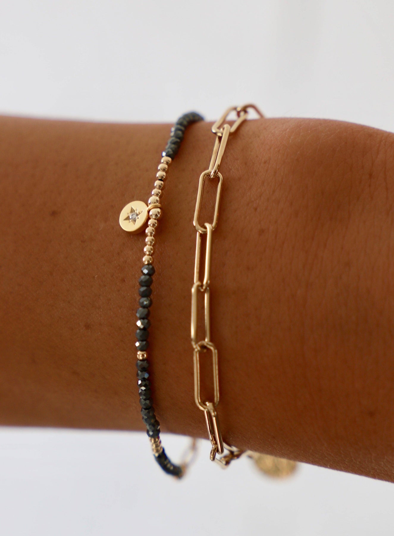 Round cz star pendant on single layer petite crystal with gold accents bracelet