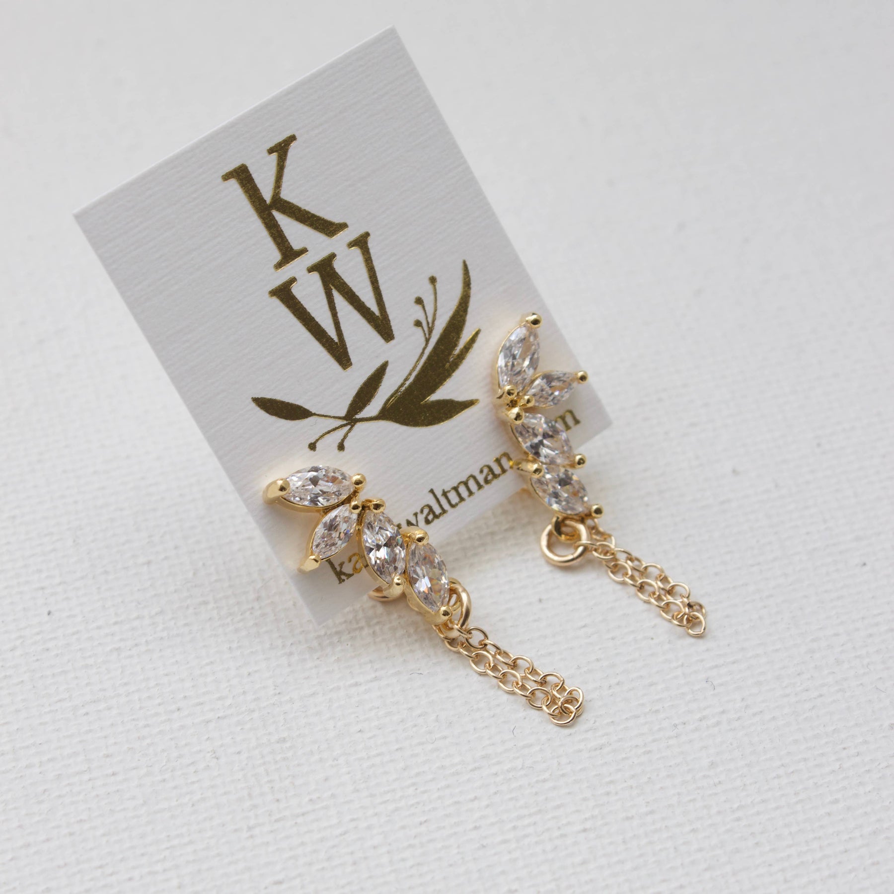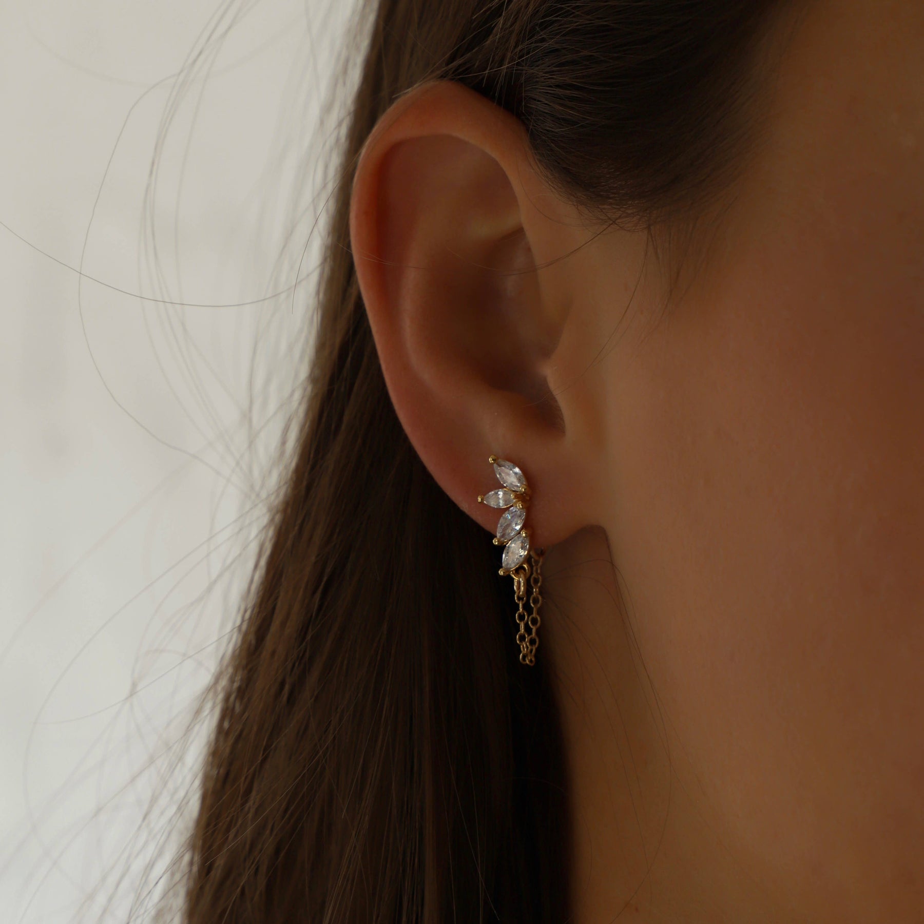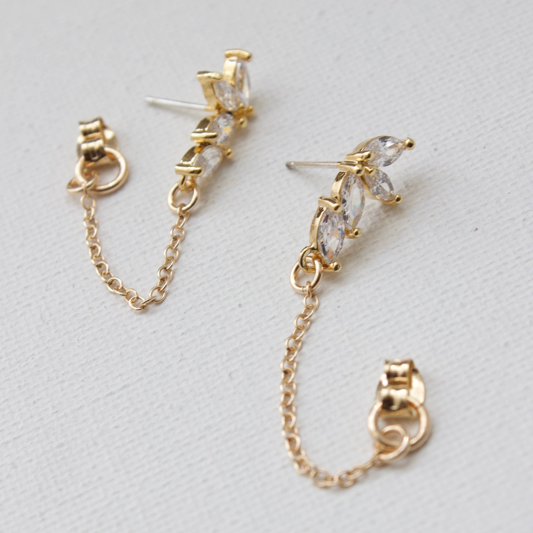 Cubic Zirconia Marquise Stud Drop W/ Gold Filled Chain Loop