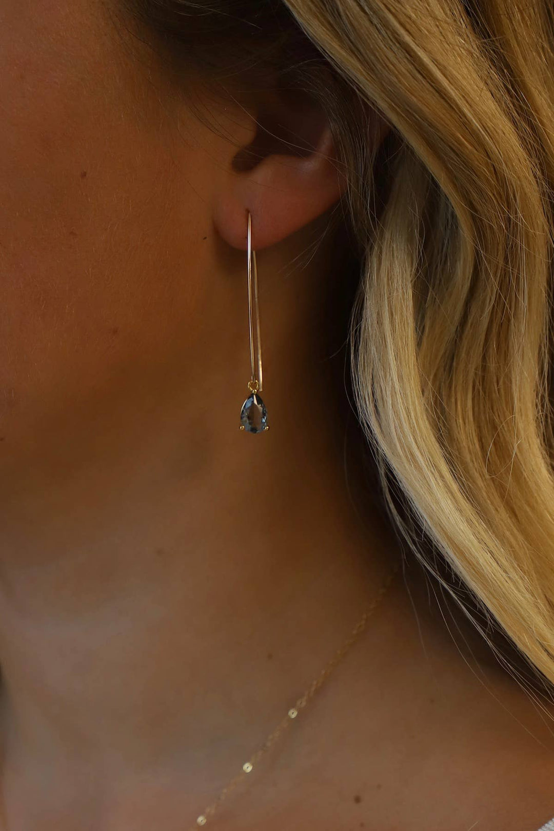 E1643CHAR Gold Earrings-Charcoal Teardrop