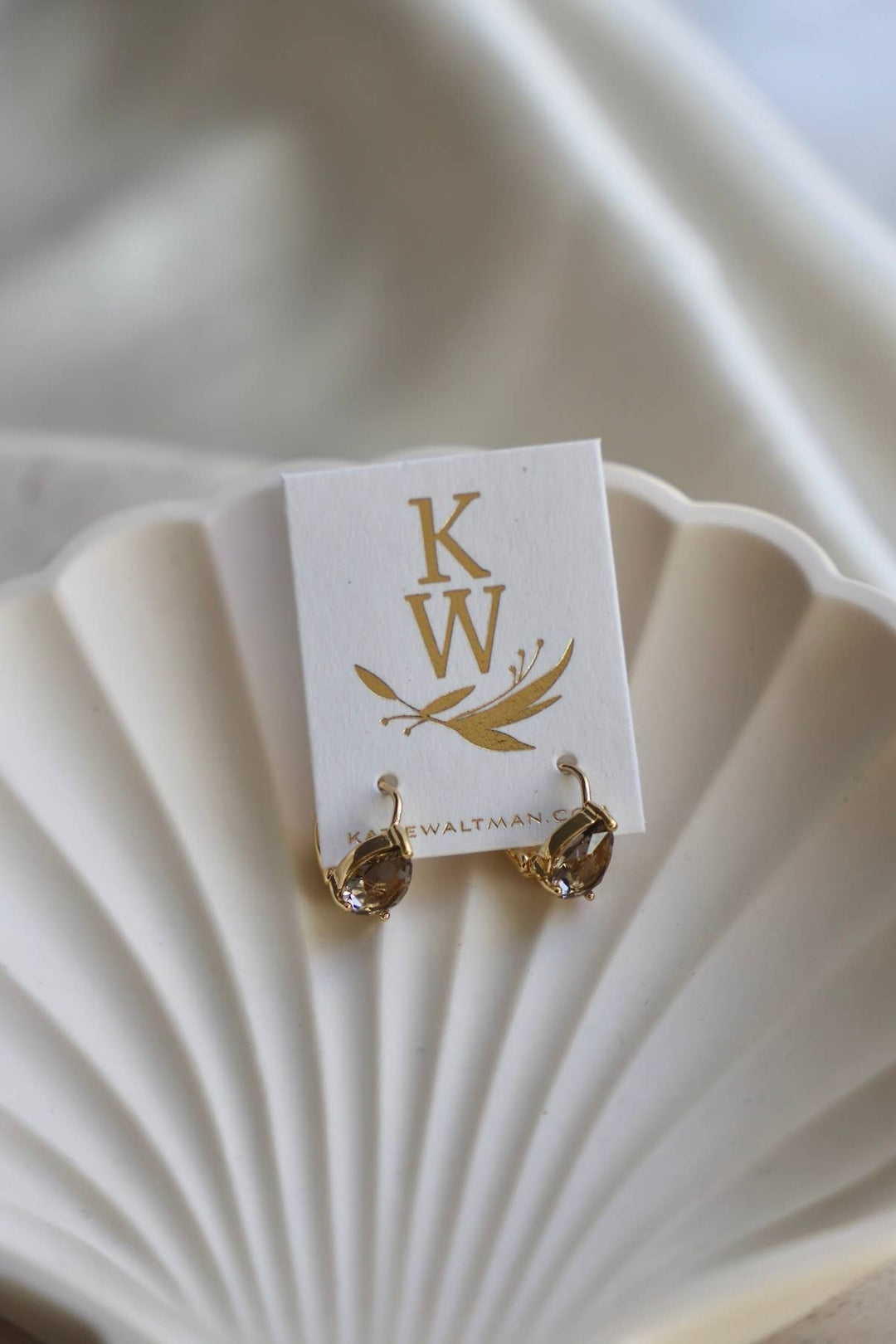 E1623SMOKYG Gold Earrings-Crystal Teardrop Huggies Smoky