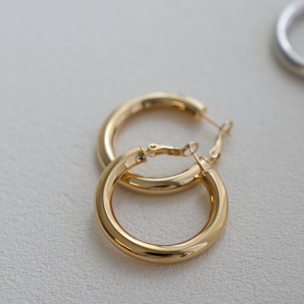 E1509G Gold Earrings-Large Agnes Thick Hoops