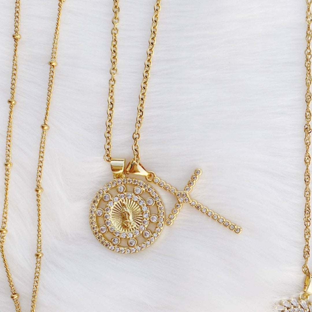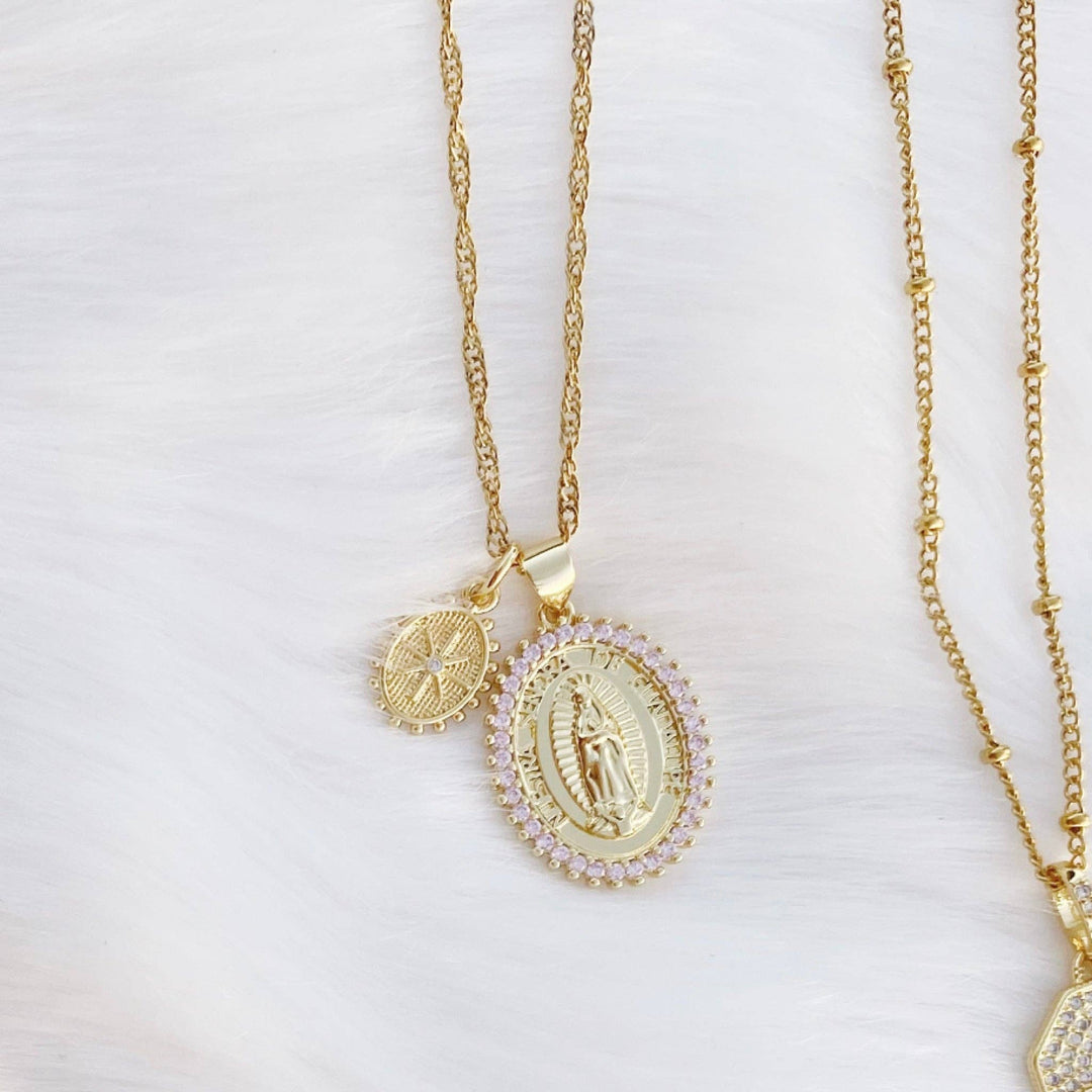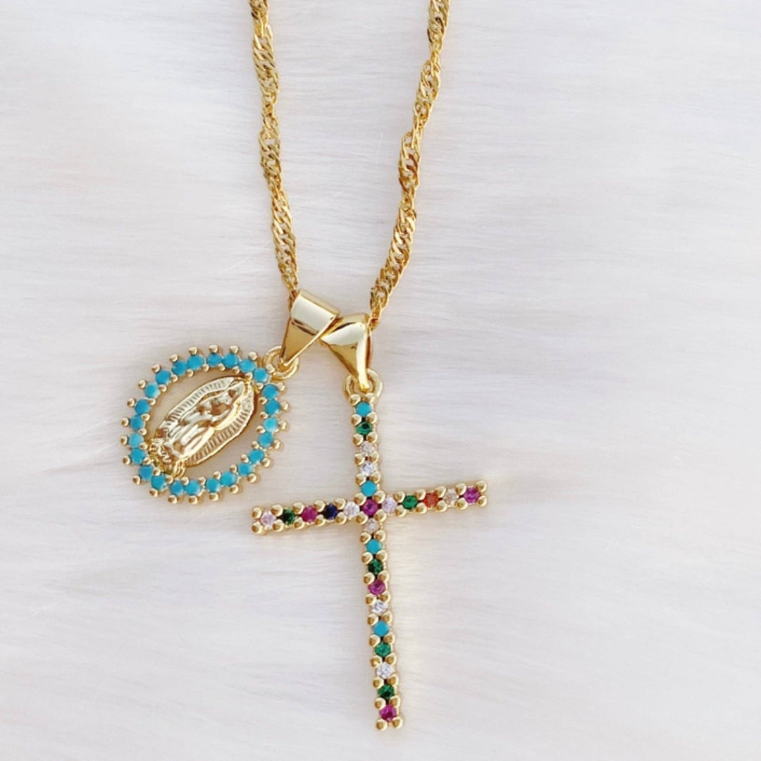 Necklace-Shine Double Charm Religious Pendant