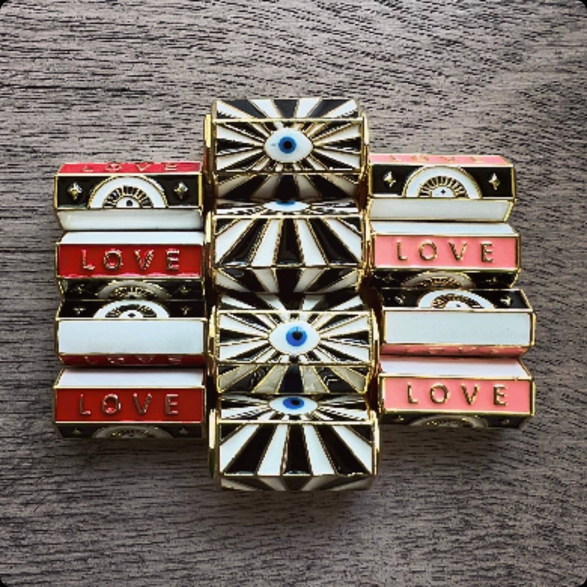 The Warhol Necklaces are so fun! Two lengths 16” or 19” gold plated stainless steel paperclip chain so you can wear two stacked and make your own messages 💛 Multiple styles of these groovy enamel and pave beads! Beads are plated copper and come with 16- or 19-inch chain **Beads are photographed without chain so you can completely see every side of each style