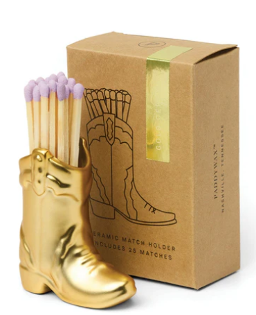 Cowboy Boot Vintage Match Holder-Gold Metallic