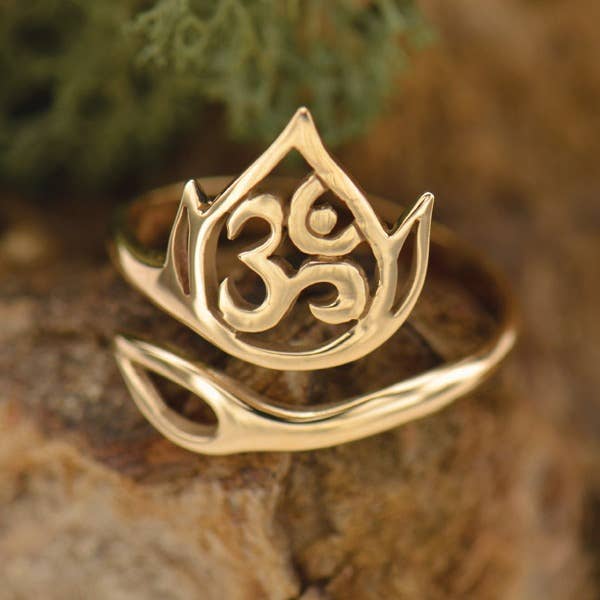 Adjustable Openwork Lotus and Om Ring-Bronze