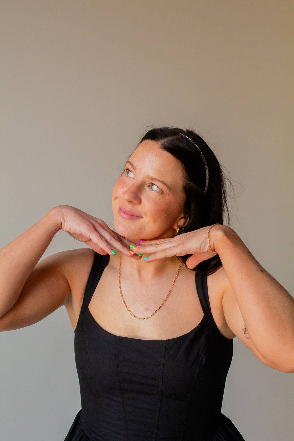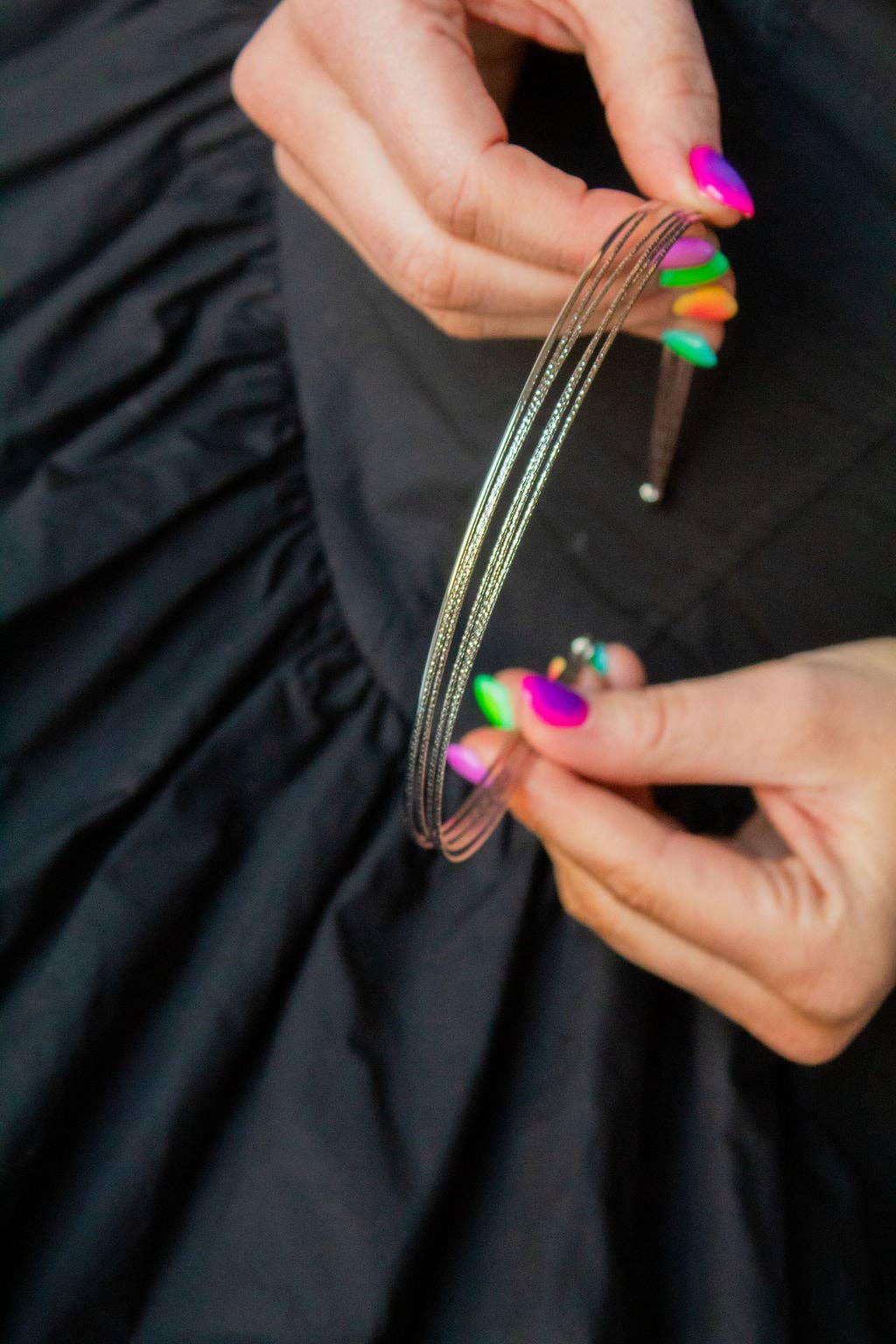 This headband is to die for! This is a thin metal wire headband that comes in both silver and gold. Made with sturdy, high-quality metal, it will effortlessly match any vibe and any occasion and last forever. It's so comfy and the metal makes it so you can adjust it bigger or smaller to fit your head size. Its trulyyyy beautiful!