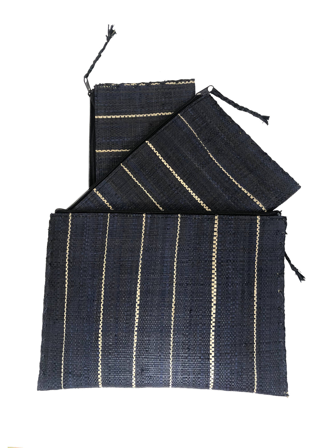 Set of 3 Pinstripes Zippered Straw Clutches
