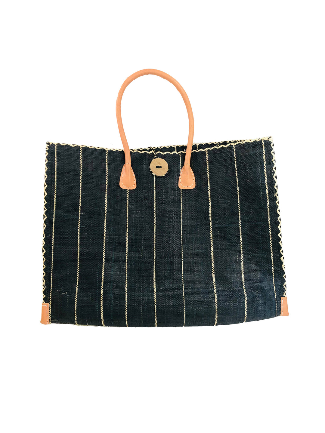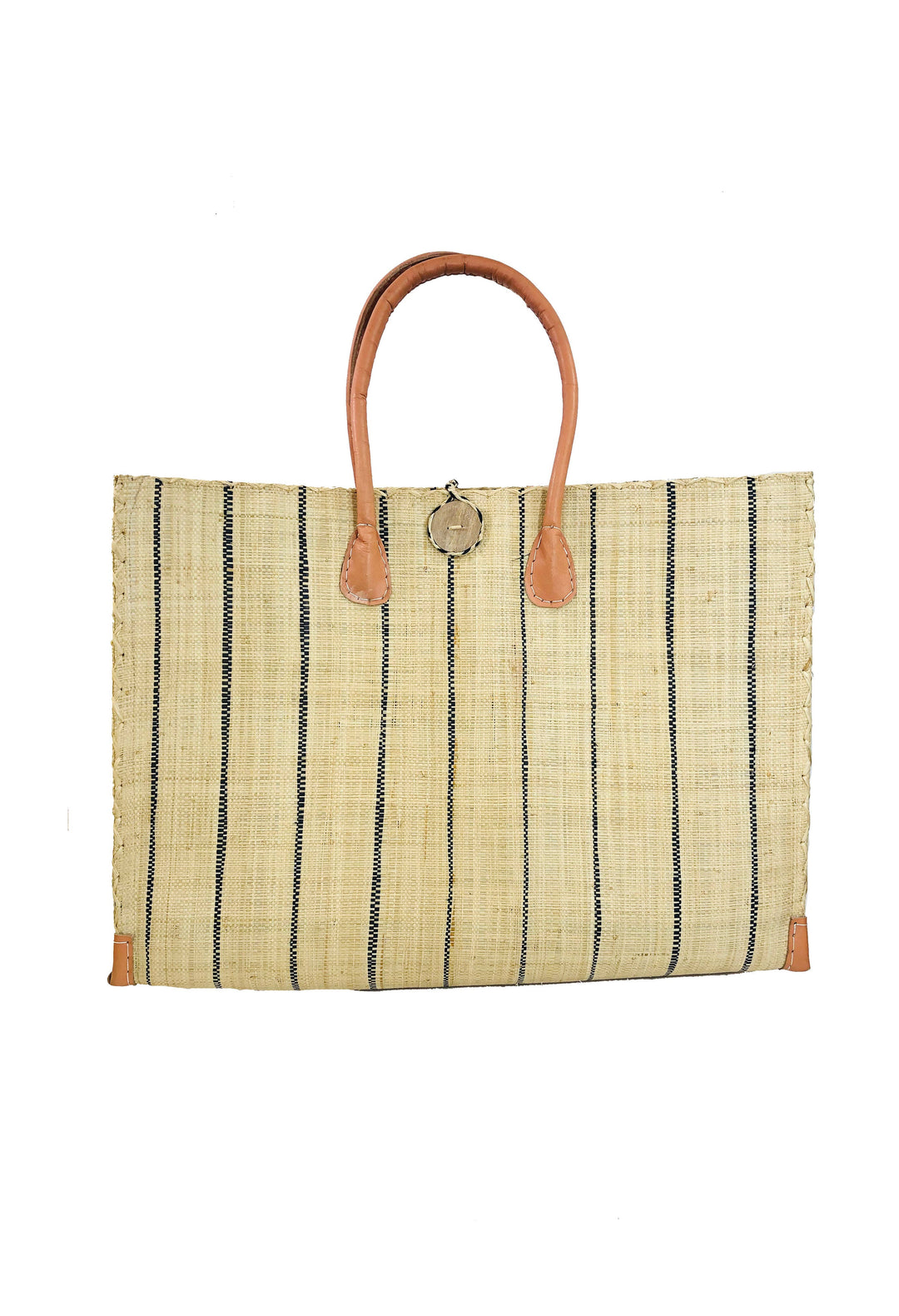 Zafran Pinstripes Large Straw Beach Bag with Plastic Liner