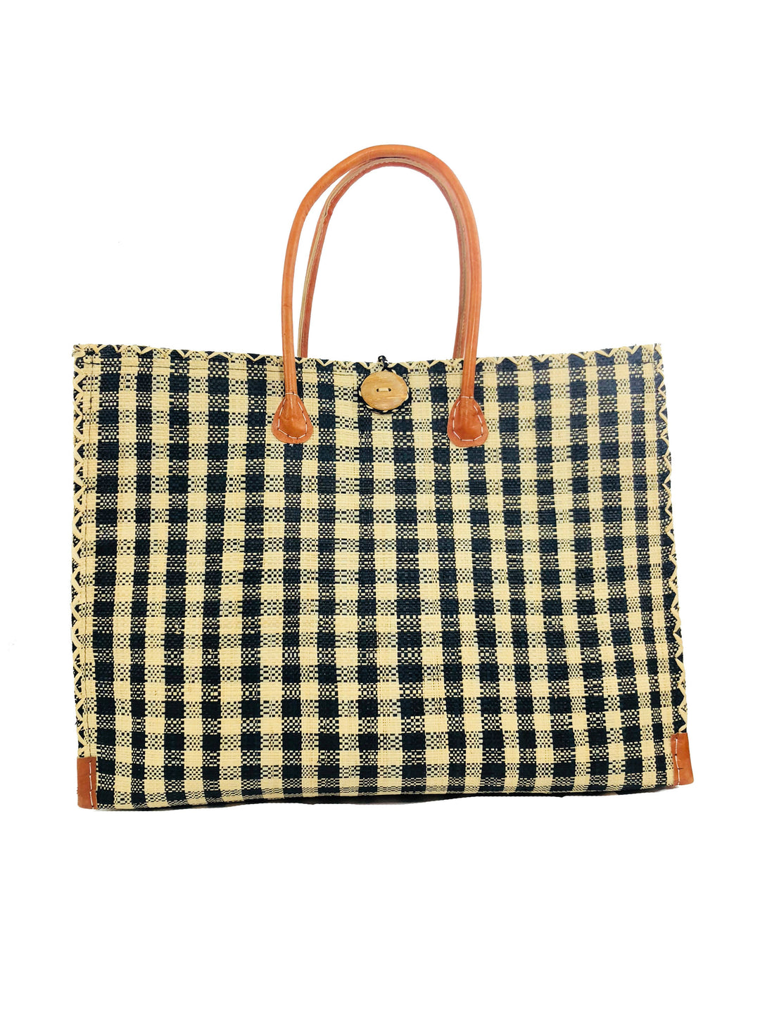 Zafran Petite Gingham Beach Bag with Plastic Liner