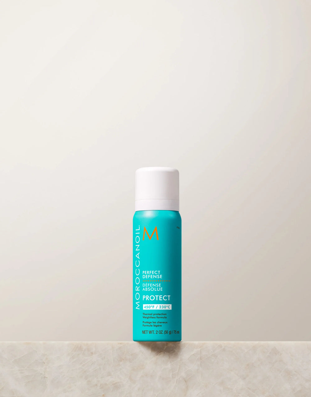 Moroccanoil Perfect Defense is a weightless, dry aerosol, heat protective spray. This nourishing, argan oil and vitamin-fueled formula re-hydrates the hair while protecting against the damaging effects of heat styling up to 450°F/230°C.