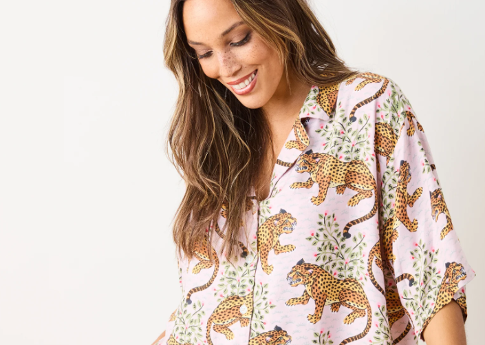 Wide-leg pants are a higher rise than our traditional cotton poplin pajama sets.