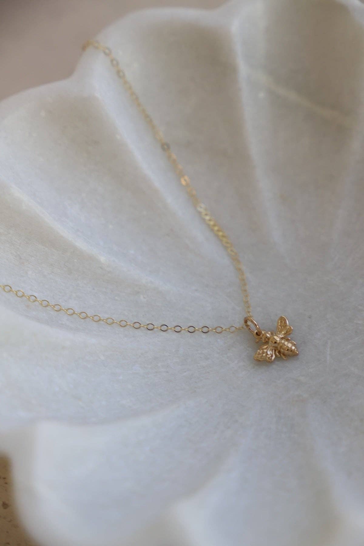 One of our best selling styles, the petite Bee Charm Necklace makes a great gift for all ages. Featuring a small bee charm an a 18" simple chain, you can't go wrong with this necklace! Materials: natural bronze or sterling silver bee charm, gold filled or sterling silver chain Length: 18" chain