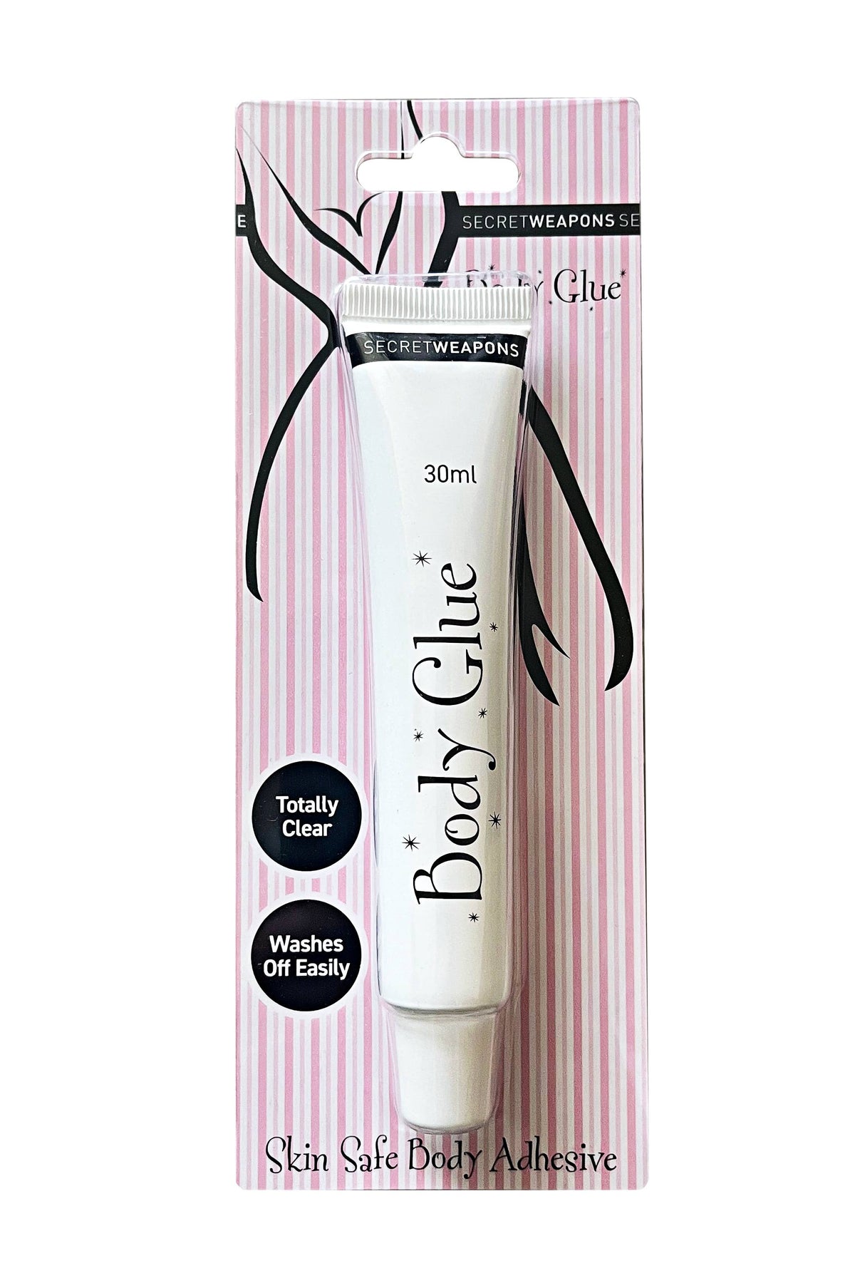 Body Glue is skin safe, clear and stain free, keeping your clothes in place all day long. Secret Weapons adhesive Body Glue has been designed with an easy application tube and is a perfect size for your purse or handbag. Body Glue has many uses: • Keeps low cut and revealing dresses in place • Sticks clothing, accessories and stockings • Perfect for dancers and costumes • Secret Weapons adhesive Body Glue has been designed with an easy application tube and is a perfect size for your purse or handbag. Benefits of our Body Glue: • Clear, stain-free body adhesive • Non-toxic & skin friendly • Long lasting sweat resistant hold • Flexible & residue-free formula • Easy application tube • Washes off in water How to Apply Body Glue: • Apply an even layer of Body Glue to dry skin (free of moisturiser and oils) in the desired location • Use a smaller amount for thin fabrics and apply more liberally for thicker fabrics • Air dry Body Glue for 30 seconds
