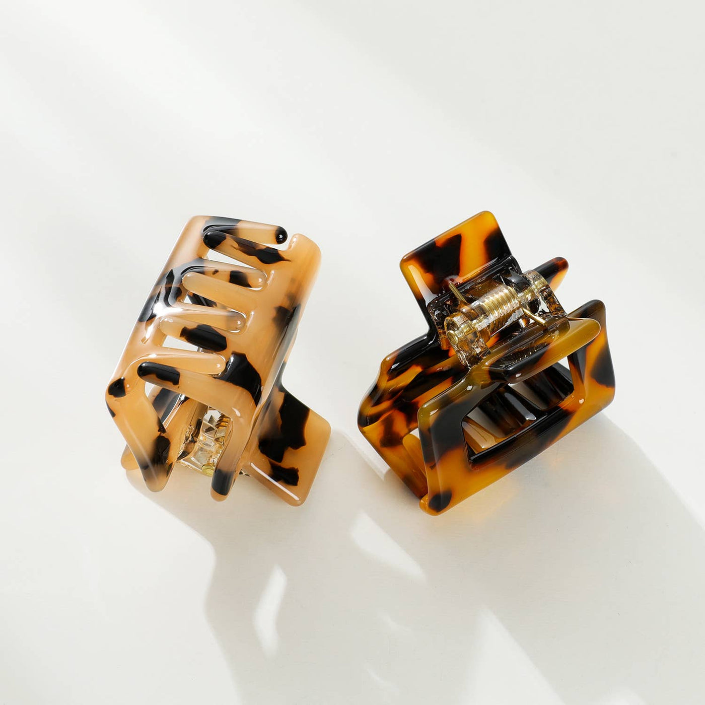 Measurements: 3.4cm x 3.3cm 5g Materials: Cellulose Acetate (eco-friendly) Cellulose Acetate is a synthetic fiber produced from plant derivatives such as wood pulp and cotton. CA is both durable and biodegradable. Compared to acrylic/PVC materials, our clips will last you longer. *Each claw will have slight variations of color and pattern due to how the cellulose plates are cut during our production. *Actual colors may vary slightly from what appears online due to lighting and differences in monitors.