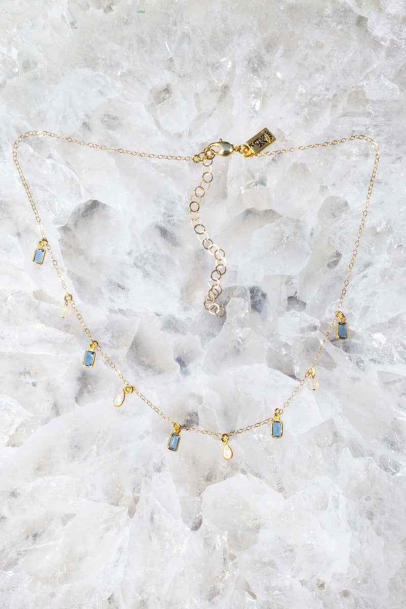 Multi bezel gemstone opal and blue topaz bezel 14K gold vermeil 16" necklace with 2 inch extender.