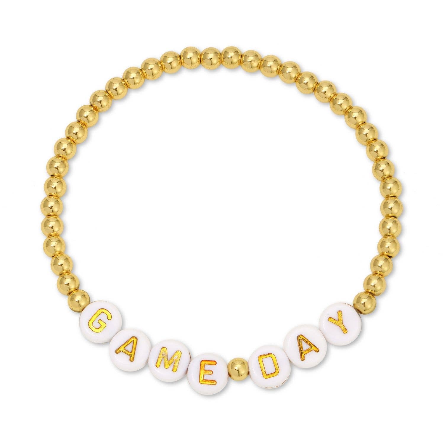 Game Day Beaded Bracelet Stretch Braclet Approximately 6.5" 18k Gold Plated Brass Base Plastic Letter beads (some imperfections and variance in color will occur)