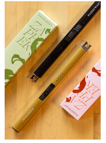 The lighter to end all lighters - the Paddywax Zapper sparks a new way to ignite the flame of your favorite candle. With a slim, sophisticated shape and format, our electric lighter is an aesthetic addition to your essential candle accessories alongside our gold wick trimmer and candle stuffer. These lighters are ideal for hard-to-reach wicks in large and tall candles and include a USB charger.